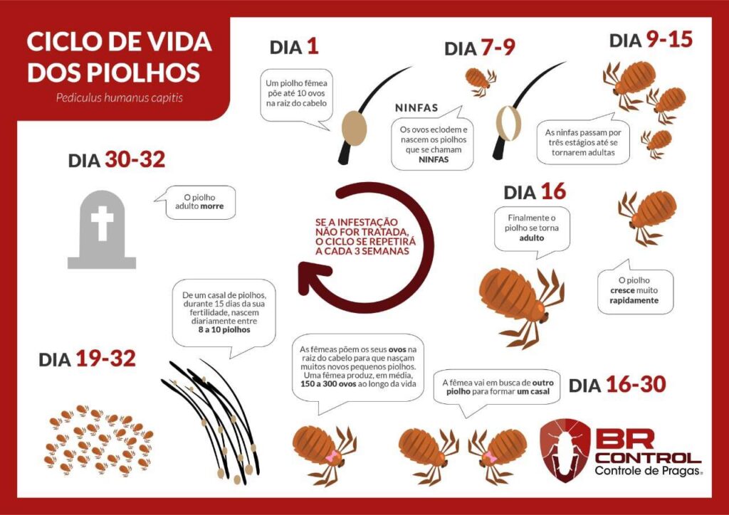 Cada piolho pode depositar de 5 a 10 lêndeas por dia, que eclodem dentro de 7 dias, dando origem às ninfas (piolhos jovens). Estas prendem suas microscópicas mandíbulas na raiz do cabelo para se alimentarem do nosso sangue.